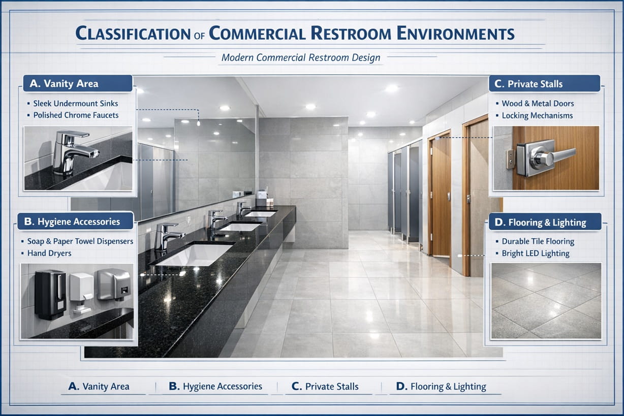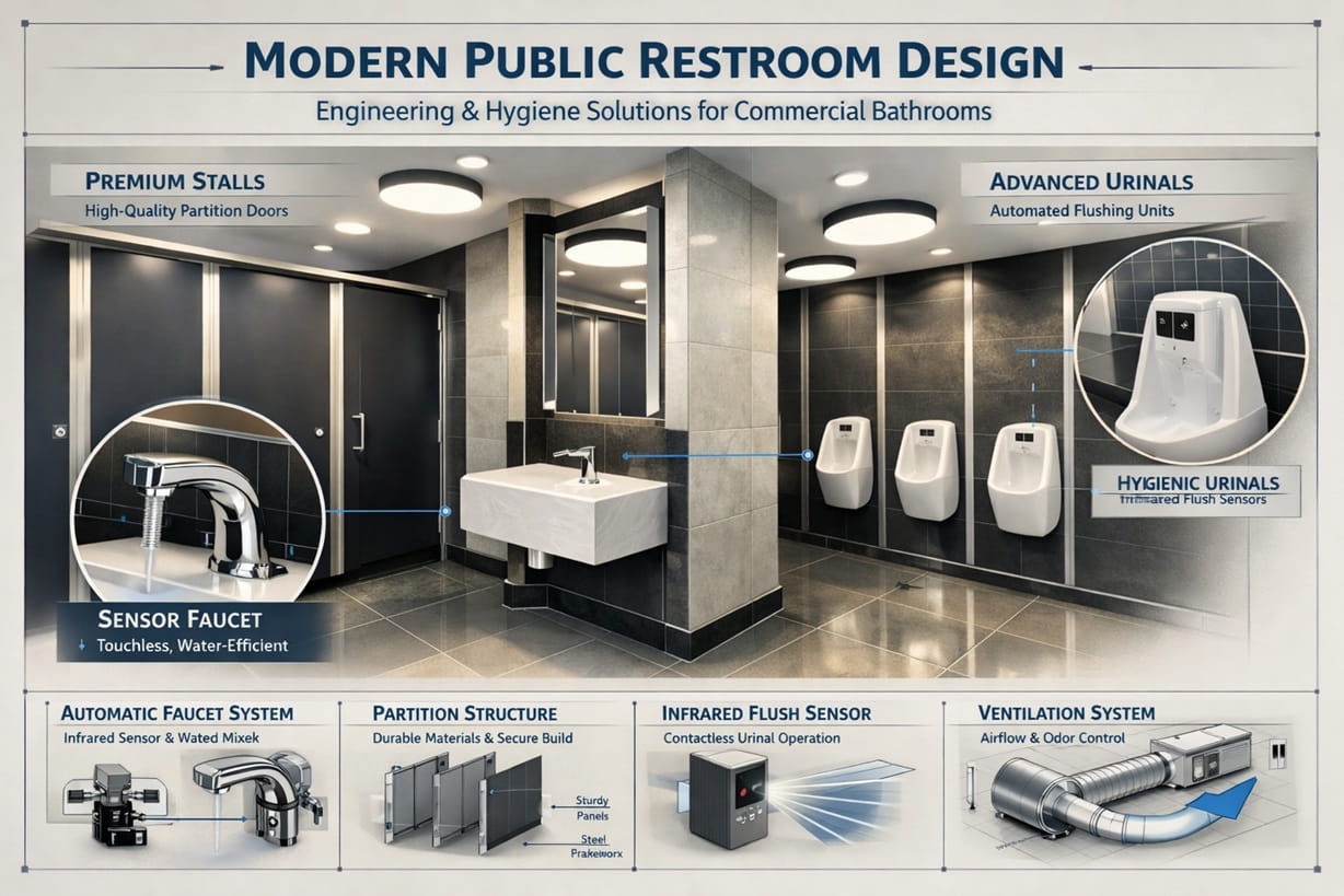Commercial restrooms represent one of the most complex operational environments within modern buildings. Unlike residential bathrooms designed for limited private use, commercial restroom facilities must support continuous public interaction, hygiene control, regulatory compliance, and long-term infrastructure durability.
