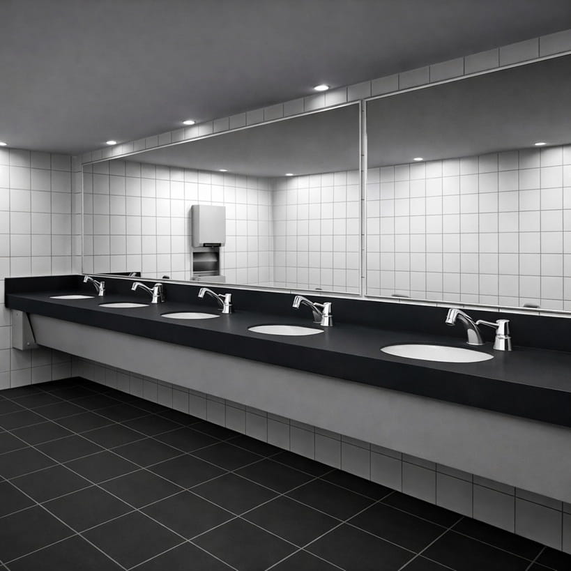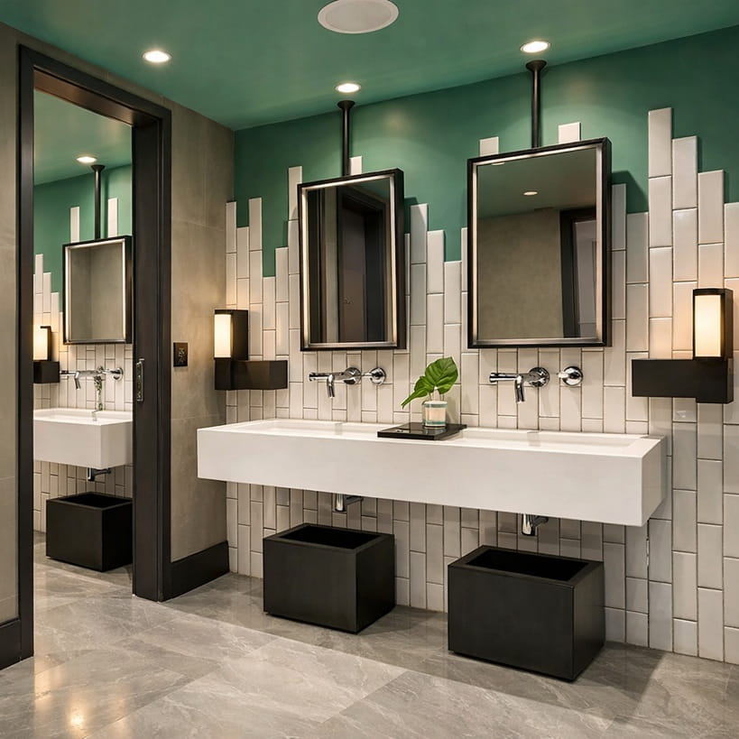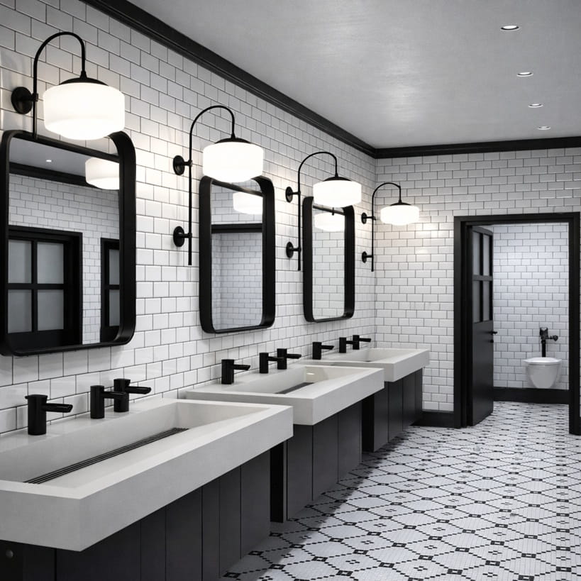modern commercial restroom infrastructure public restroom handwashing stations high traffic commercial restroom layout