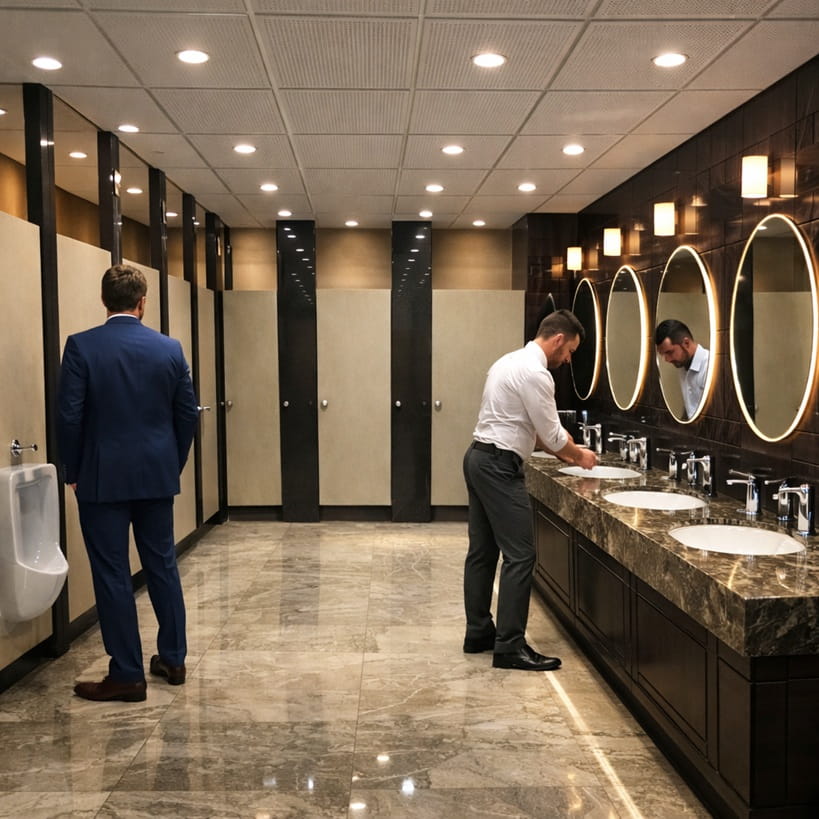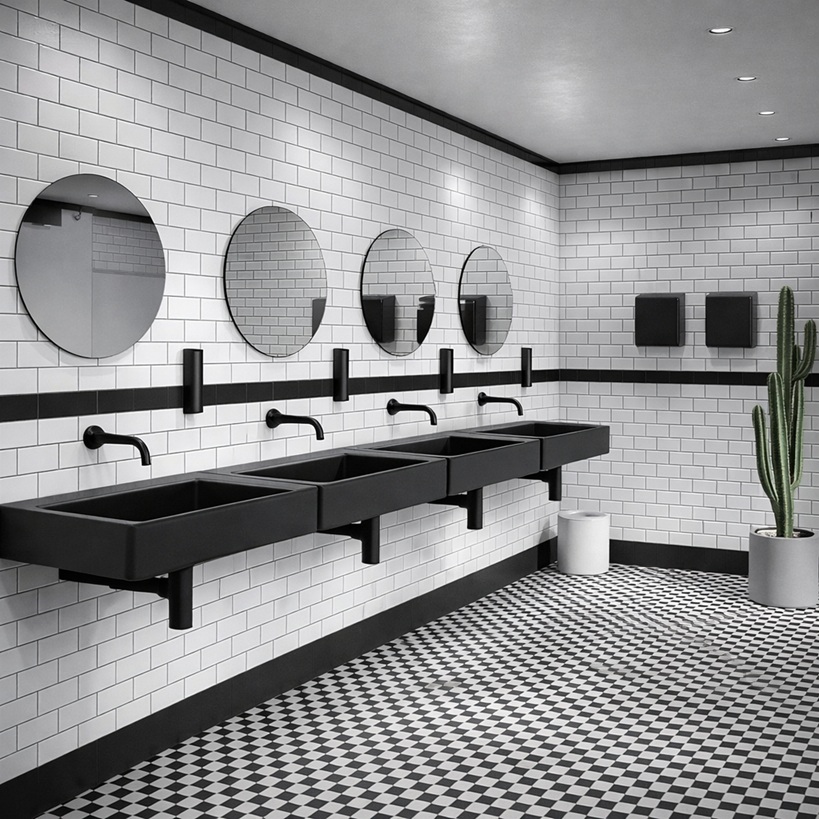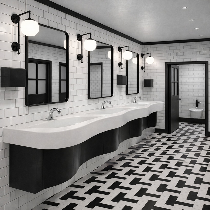 BathroomDSGN.com examines commercial restrooms not from an aesthetic or retail perspective, but as high-performance building systems combining architecture, plumbing engineering, public health science, accessibility planning, and facility management strategy.